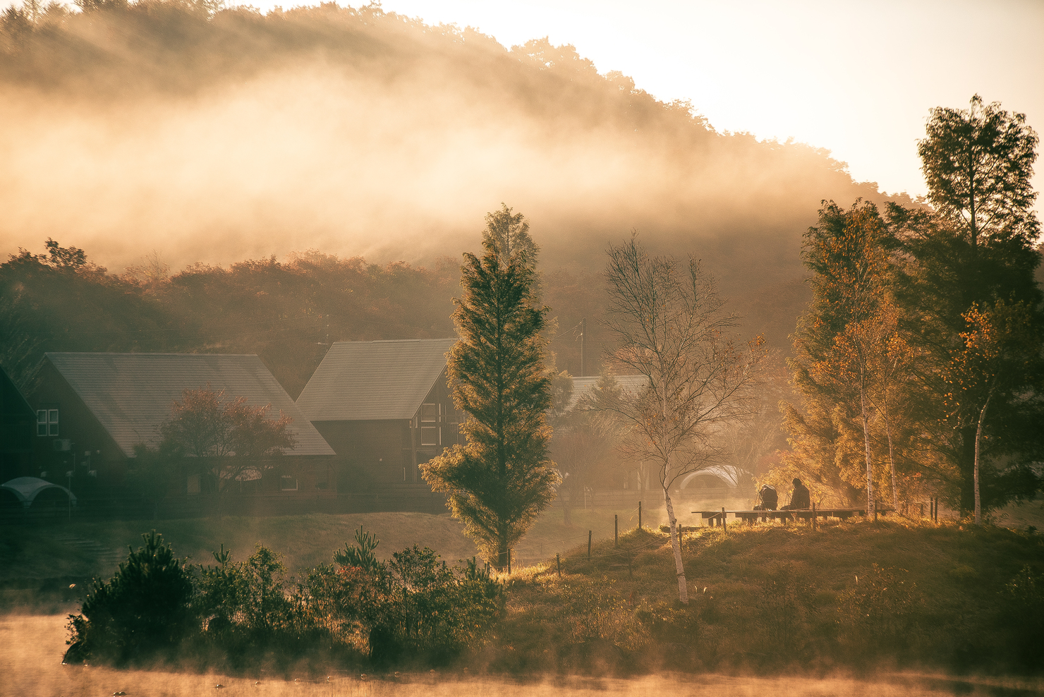 福島県天栄村にあるエンゼルフォレスト白河高原という広大な敷地にある愛犬と素敵な時間を過ごせる施設になっています。その施設内にある湖に毛嵐が立ち、周りが段々明るくなるにつれて人々が幻想的な空間に吸い寄られるようにやって来る。